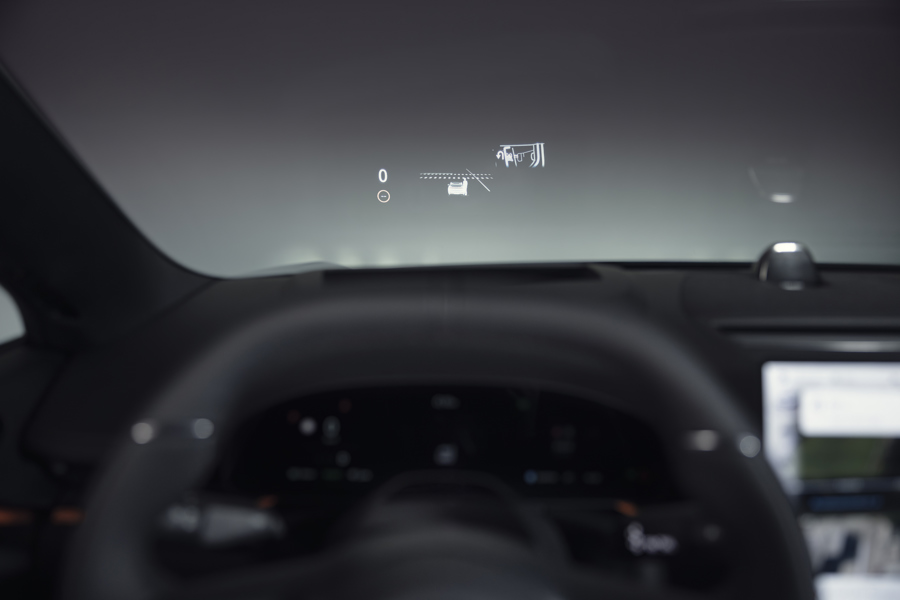 Behalten Sie die Strasse im Blick – dank eines 35,5-Zoll-Head-up-Displays mit Augmented Reality (AR). Es kann eine Vielzahl individuell anpassbarer Informationen anzeigen, darunter Navigations-Minikarten und Wegbeschreibungen sowie Informationen zu Geschwindigkeitsbegrenzungen und Verkehrszeichen.