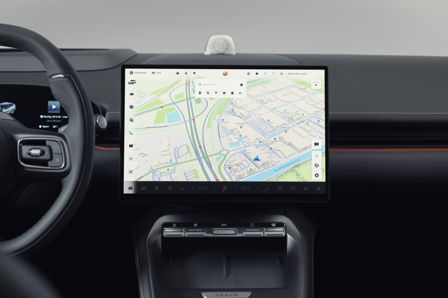 In der Mitte der Frontblende befindet sich ein 15-Zoll-OLED-Touchscreen, der Ihnen einen schnellen und intuitiven Zugriff auf viele Funktionen ermöglicht, darunter Medien, das Navigationssystem und mehr.